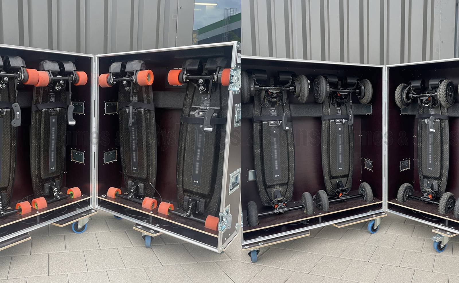 Que se soit pour des déplacements professionnels ou des manifestations sportives, la malle de transport sécurisé garantit la protection et la durabilité des skateboards ékectriques.